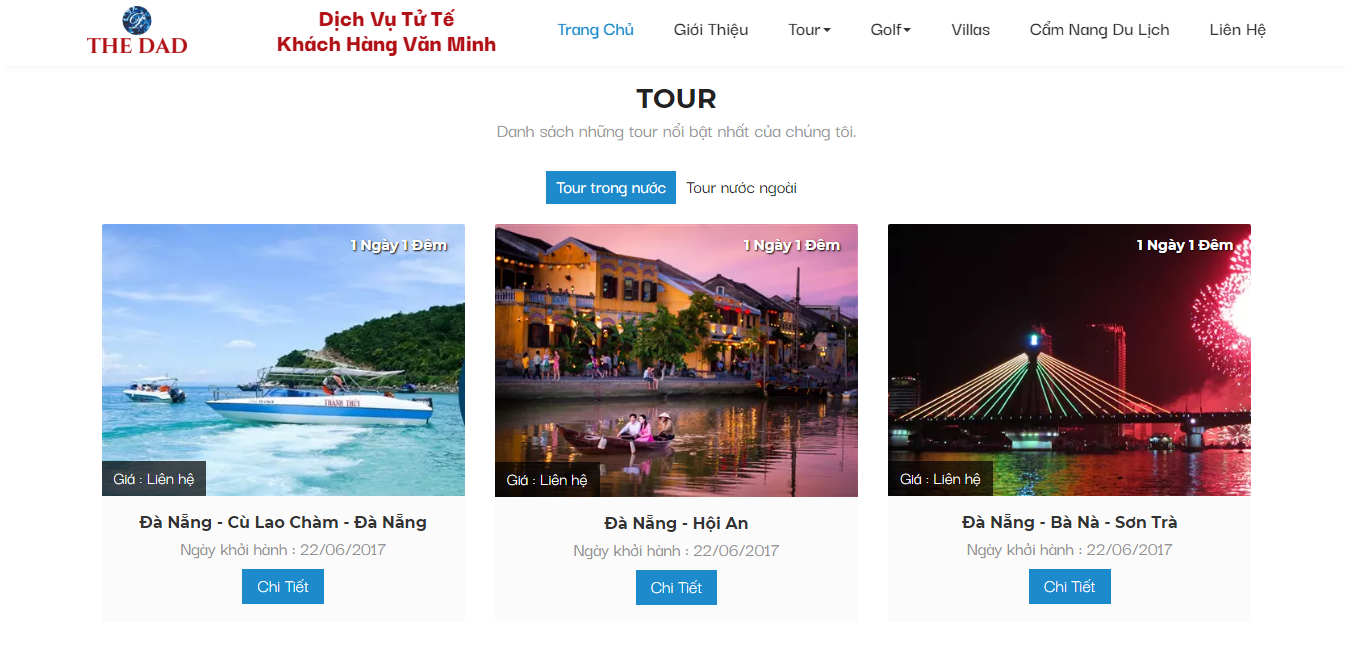 Công ty cổ phần du lịch Dad tọa lại tại 116 Đồng Kè, Hoà Khánh Bắc, Liên Chiểu, Tp.Đà Nẵng, Việt Nam là thương hiệu cung cấp dịch vụ du lịch, nhà hàng, khách sạn,... uy tín tại Đà Nẵng. Trong hành trình đưa các dịch vụ đến gần hơn với khách hàng, Styles Software rất hân hạnh được đồng hành cùng Quý đơn vị để phát triển website: https://thedadtourist.com/.