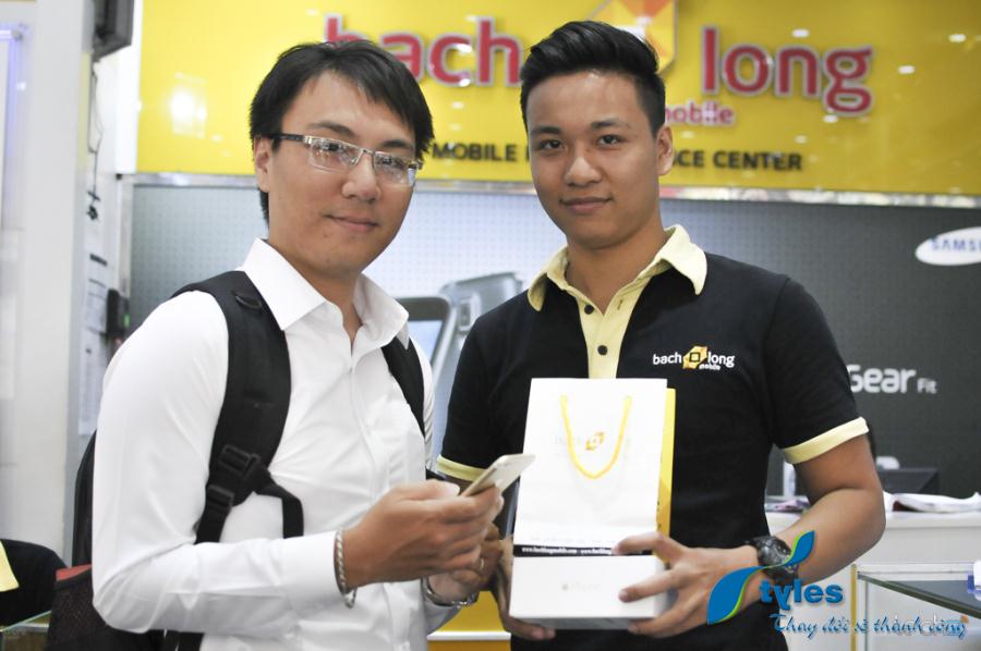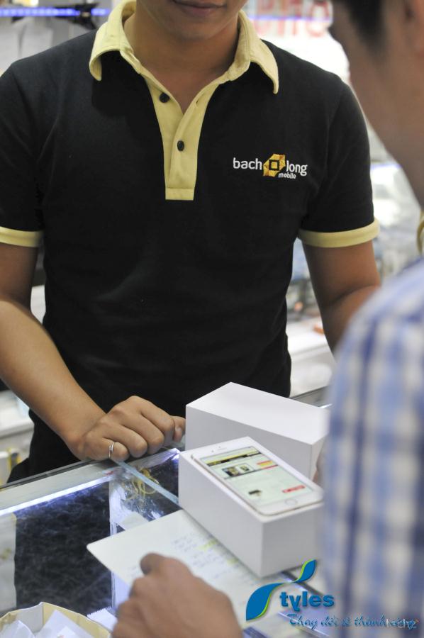 Trước khi chiếc điện thoại iPhone 6 này có mặt tại cửa hàng Bạch Long Mobile (136 Trần Phú, P.4, Q.5, TP.HCM) thì đã có rất đông khách hàng đợi chờ. Trong số những khác hàng có mặt tại đây đều là những khách đã có đặt cọc trước iPhone 6 và đến để nhận hàng.