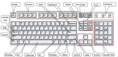 Vị trí các phím bấm trên một bàn phím chuẩn. Ảnh: Internet