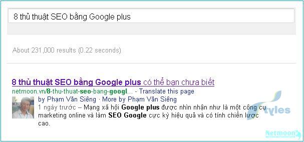 Hiện nay, Google đã cho hiển thị hình ảnh và tên tác giả từ Google plus trên kết quả tìm kiếm trong trường hợp.
