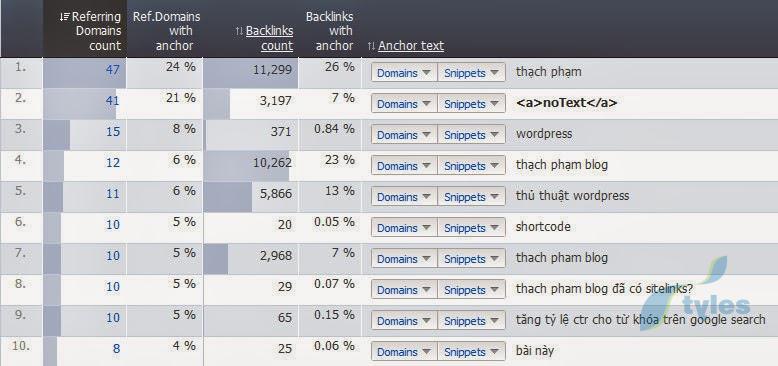 Một điểm mình đặc biệt thích là phần Anchor Text trong Backlinks Report. Mình xếp Ahrefs Rank từ thấp đến cao và phát hiện ra rất nhiều anchor text vớ vẩn được tạo ra (bởi ai đó, thường là spammer) và từ đó có cách xử lý thích hợp.