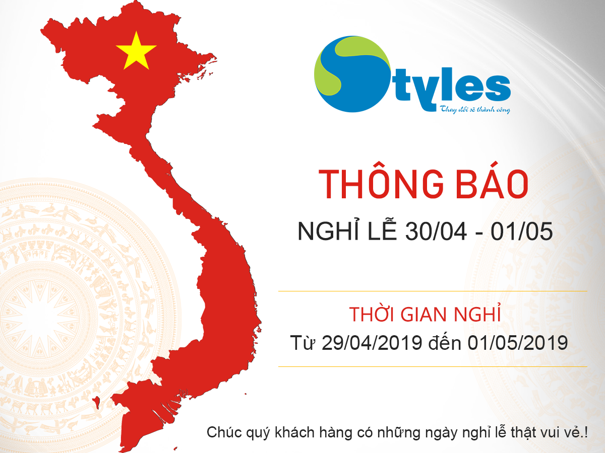 Styles Software trân trọng thông báo tới Quý khách hàng/ Đối tác lịch nghỉ Lễ Giải Phóng Miền Nam 30/4 và Quốc tế Lao Động 1/5 như sau