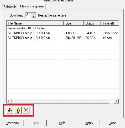 - Mục có 2 mũi tên là chọn file ưu tiên, khi bạn kích chọn 1 file trong danh sách sau đó kích vào mũi tên lên trên nó sẽ đc ưu tiên tải trước.