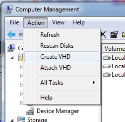 B3: Action--> Create VHD.